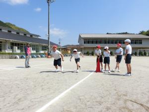 まずは準備体操。そして「かけっこ」や「全校リレー」で盛り上がりました。
