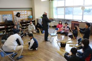 学校運営協議会会長さんに教わりながら、わらすきとわら打ちをしました。