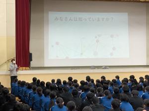 12月22日(木曜日)に2学期最後の全校集会を行いました。表彰披露の後には生徒会長からのプレゼン「ほっとフィルム展」、その後、教務主任からの企画プレゼンがありました。2学期を締めくくるとても有意義な集会でした。