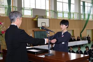 お別れの言葉 始めに在校生から呼びかけが始まりました。練習の成果を発揮して、呼びかけの声が体育館の隅々まで響いていました。また、♪素晴らしいときは やがて去りゆき ♪で始まる「さようなら」の歌声も、大変澄み切った美しい歌声で感動しました。在校生から卒業生に素晴らしい歌のプレゼントです。
