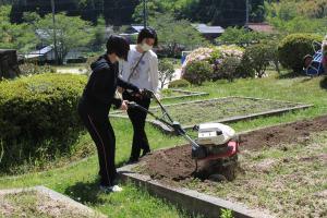 来週予定しているサツマイモや野菜の植え付けに向けて、1,2年生の先生たちが準備をしています。