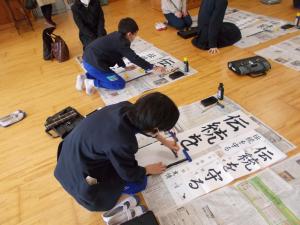 恒例の「新年書き初め大会」を保護者の方に参観していただきました。