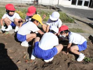 地域の方を講師に迎え、2年生がいもほりをしました。