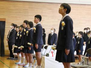卒業生たちは、在校生や先生方、地域や保護者の皆さんへの感謝の気持ちを心を込めて伝えました。