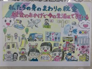 6年生の的場梨桜さんは「税に関する絵はがきコンクール」で岩国市教育委員会教育長賞を受賞しました。