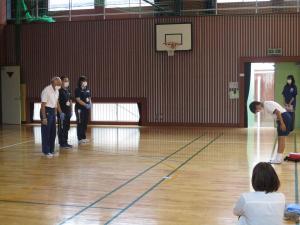 全校児童と教職員、保護者、学校運営協議会の委員さんも参加して、日本赤十字社山口県支部の指導員の方から指導を受けました。