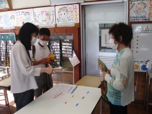 メールによる連絡を受けた保護者の方が児童を引き取りに来られると、カードの照合、引き渡し相手の確認、連絡先の確認を行い、引き渡しを行います。