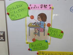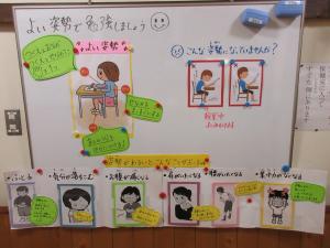 寒くなると体がちぢこまって背中が丸まってしまいがちです。 よい姿勢で体も頭もすっきりさせて学習に取り組みましょう!