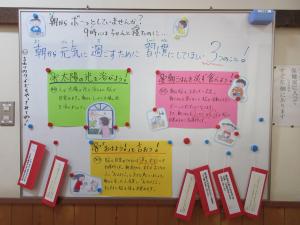 12月の掲示は、朝から元気に過ごすための習慣づくりについてです。