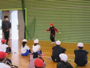 交流得意技披露では、学校を代表して2年生と先生がみんなの前で技を披露しました。