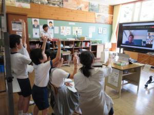 5,6年生が、宇佐川小の5,6年生とリモートで交流をしました。