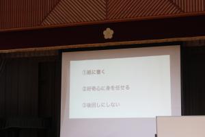 休憩後は「夢先生」のお話を聞きました。夢を実現するために大切なことをご自身の経験をもとに教えていただきました。