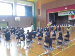 今年度は7人の一年生を迎えて、入学式を行いました。これまでと違い、新2~6年生は前日に学級開きを済ませた翌日に入学式を行ったので、事前準備は万端、呼びかけもバッチリでした。 見ていてドキドキワクワクが伝わってくる一年生の様子でしたが。楽しみに待っていた上級生、保護者や地域の来賓の方々と一緒に、みんなで入学のお祝いをすることができました。