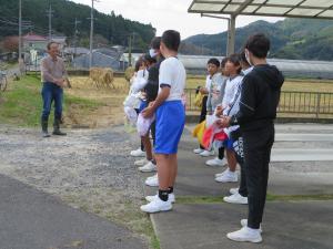 田んぼに浮かび上がったうさぎの絵の頭の上に