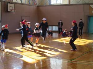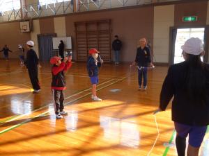 寒い中、運動場でなわとびの練習に励む姿が多く見られました。