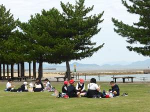 由宇の潮風公園でお昼ご飯を食べて、午後は愛宕山の中央消防署に行きました。レスキュー隊の皆さんが、消防署の仕事や施設について説明してくださいました。3年生たちは目をキラキラさせながらたくさん質問して、時間が予定をオーバーするほどでした。見学後にはたくさんの子どもたちが「消防士になりたい!」と手をあげていました。